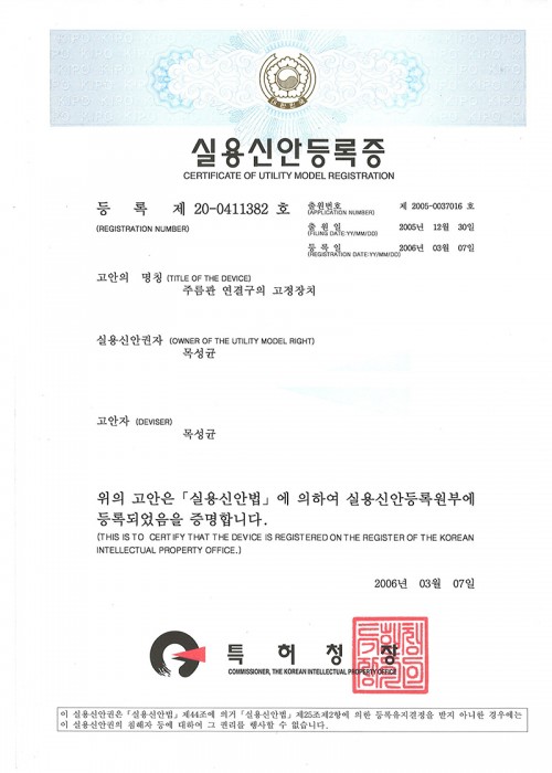 실용신안등록증 20-0411382 주름관 연결구의 고정장치